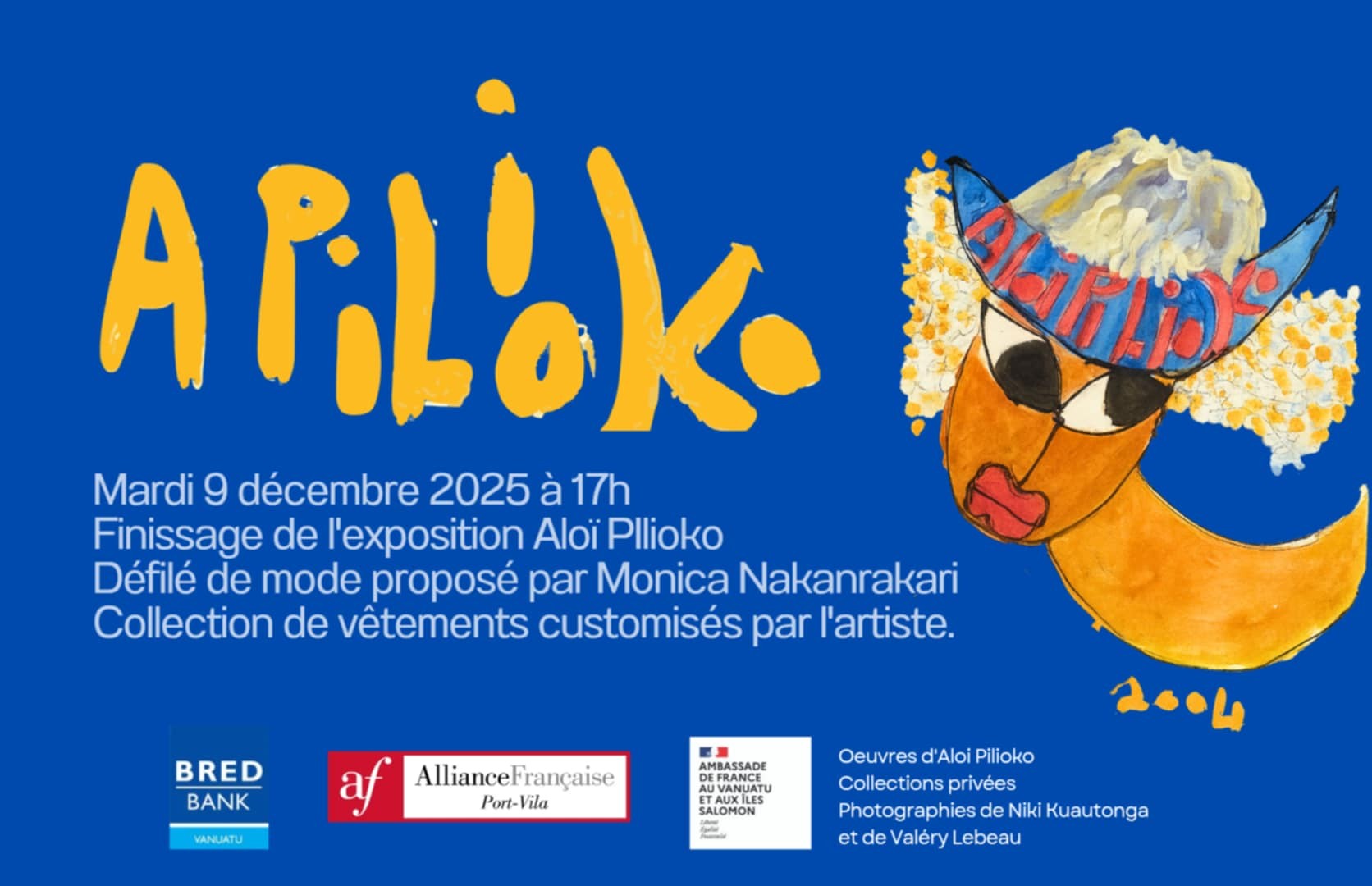 Alliance Française de Port-Vila and l'ambassade de France au Vanuatu are pleased to invite you to the closing event of the exhibition Homage to Aloï Pilioko.