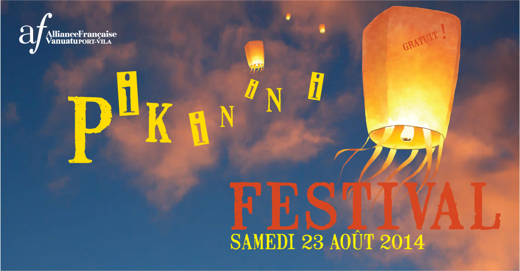 Programme du Pikinini Festival à Port-Vila proposé par l'Alliance française et les Kidams 9h30 à 10H30 : Spectacle : « PETITS PIEDS POUR GRANDS PAS » 11h à 12h : Atelier arts plastiques " peinture et pastel" 11h15 à 12h15 : Spectacle : « PICHATRUCHE » 11h15 à 12h15 : Pause déjeuner Barbecue et grillades Spectacle : « CONTES VANUATAIS » 13h30 à 15h30 : Maquillage et sculpture sur ballon 14h30 à 15h30 : Atelier théâtre ( 7-12 ans ) 15h30 à 16h00 : Spectacle : « PAROLES GOURMANDES » Atelier arts plastiques " peinture et pastel" 15h30 à 16h00 : Goûter 17h00 à 17h45 : Spectacle : « DANS TES DENTS » 18h15 : LACHER DE LANTERNES |